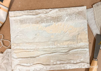 Mit diversen Materialien in verschiedenen Weißtönen bringst du deine innere Landschaft auf Leinwand und schaffst so dein individuelles Kunstwerk. Falls dir Stoffe, Servietten, Papiere oder ähnliches in die Hände fallen, die du gerne verarbeiten möchtest, fühl dich frei, etwas mitzubringen.