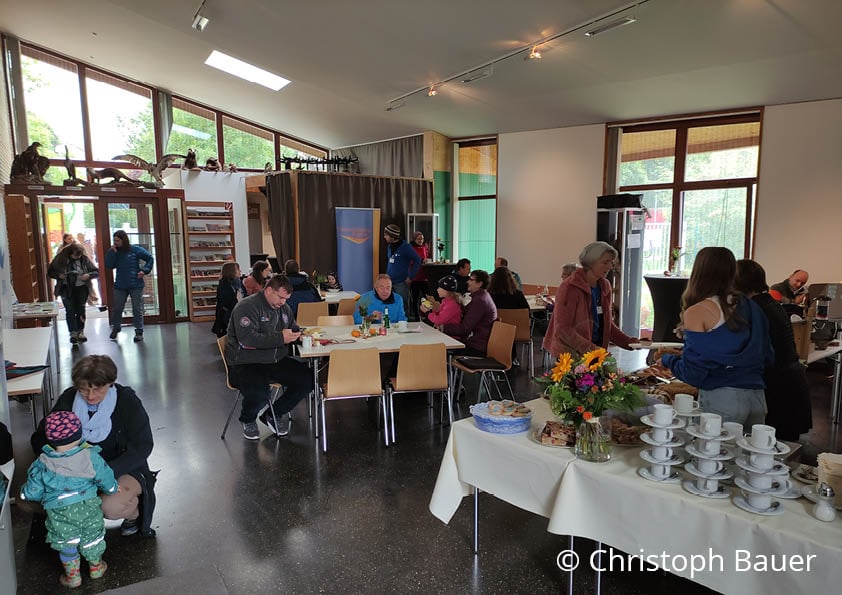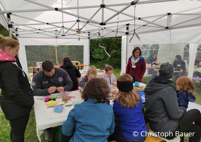 19.09.2022 - Nach zwei Jahren konnte das Team der Vogel- und Umweltstation endlich wieder zum "Tag der offenen Türe" einladen. Besonders viele junge Familien fanden den Weg nach Regenstauf. Dort haben die Kinder Federschmuck oder Tiermasken gebastelt. Wissen und Geschick waren beim Tierparcours gefragt. Außerdem konnten die Besucher Federn von Experten bestimmen lassen und das Vogelkrankenhaus kennenlernen. Großer Andrang herrschte ebenso an der Tombola unserer Bufdis mit vielen attraktiven Preisen, die unter anderem von Firmen aus der Umgebung gespendet wurden. Wer sich über Engagementmöglichkeiten des LBV in der Region informieren wollte, fand bei Jenny Neeser die richtige Ansprechpartnerin. Auch kulinarisch kamen unsere Gäste auf ihre Kosten. Der Steckerlfisch aus der Region war in Windeseile ausverkauft wie auch die Falafel in Bioqualität und das reichhaltige Kuchenbuffet.